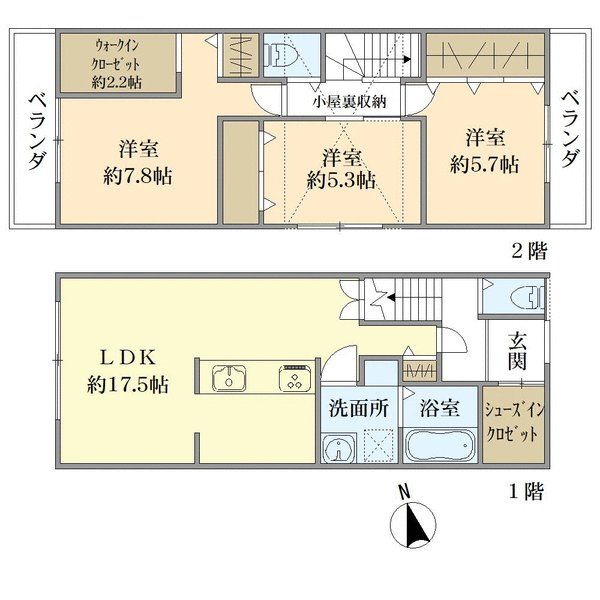 ※建物プランあり(建物本体価格:1815万円/税込)。別途、建物本体価格のほかに、外構工事費、建築確認費用等が約200万円必要です。 ※建物プランは建築を請け負うこととなる建設業者が立案した参考プランの一例です。土地購入者はこのプランに関係なく自らの意思で設計プランを立てる事ができます。
