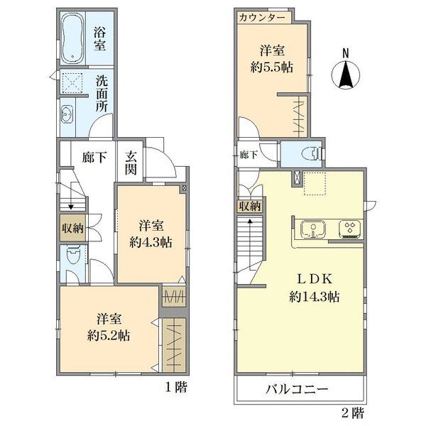【1号棟】 〇2026年4月完成予定の新築戸建 〇南側道路のため日当たり良好