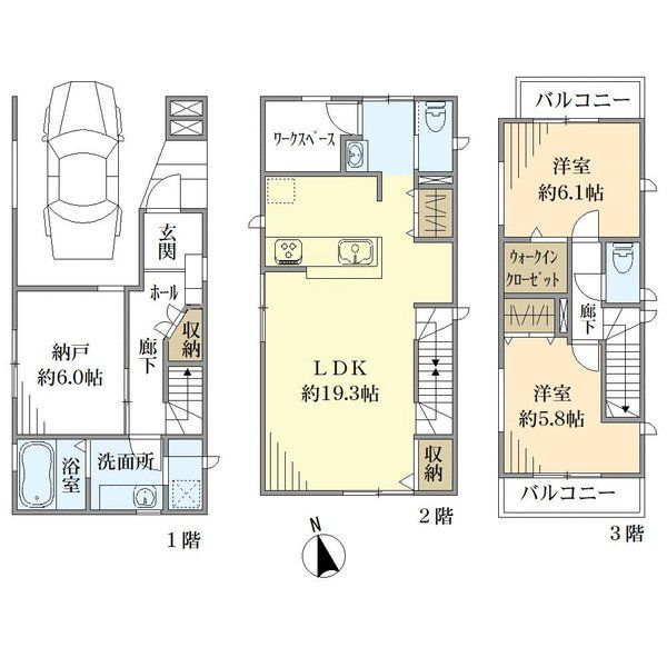 ■建築確認番号:第25UDI1C建06462号 ■第一種高度地区■敷地規模の最低限度:70㎡■自動車車庫面積:13.40㎡含む ガス:都市、水道:公営、下水:公共 |