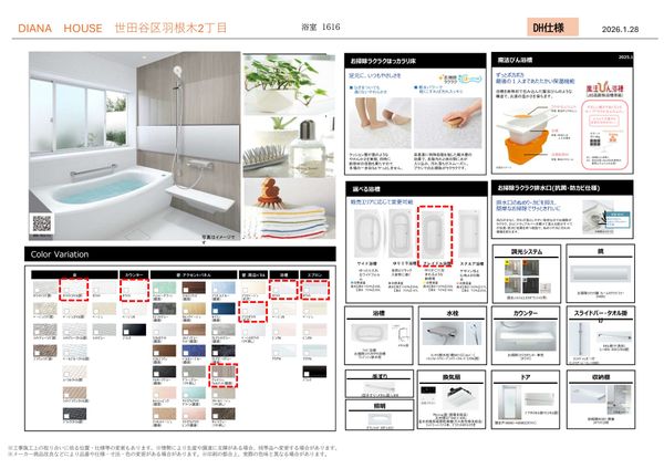 ▼アルミ製ルーバーのアクセントとボーダータイル貼りの高級感を纏った外観 ▼木目調パネル+ハイドア&600角アルパインロックタイルのデザイン ▼リビングは折り上げ天井+間接照明で空間の広がりを演出 ▼ウルトラファインバブル給湯器により日々の掃除負担の軽減が期待 ▼一年中バスルームが快適になるガス温水浴室暖房乾燥機 【1号棟】