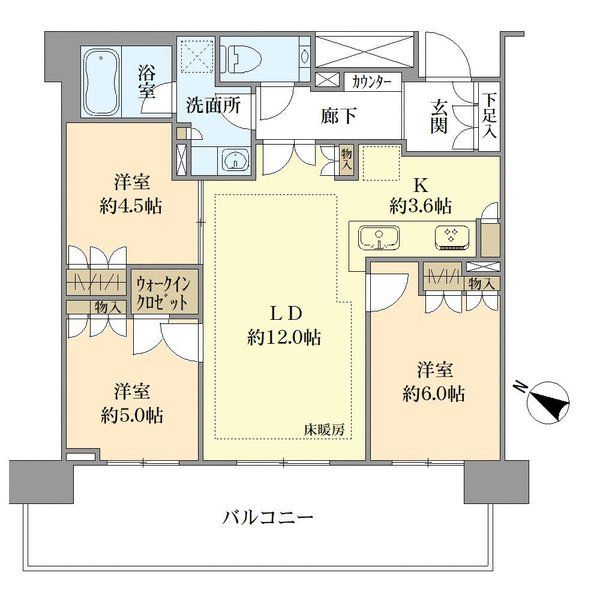 ◆専有面積:72.60㎡ 3LDKの間取 ◆ペット飼育可能(規約による制限あり) ◆各階にゴミ置場完備! 24時間ゴミ出し可能