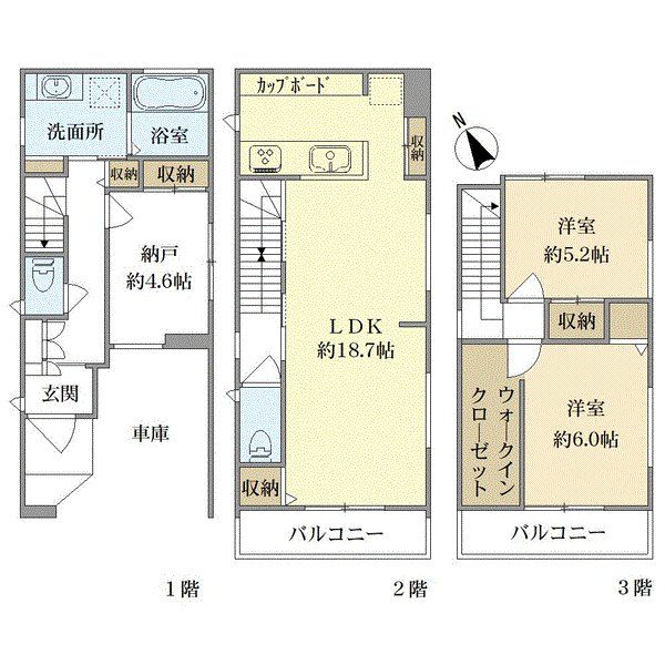木造 地上3階建て |