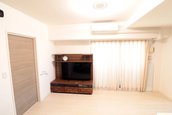 リビングには壁面に棚もついております。※家具消し加工済み