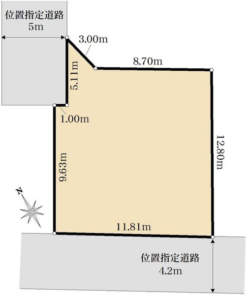 接道2:南西、幅員4.2m 設備:都市ガス、公営水道、本下水 |