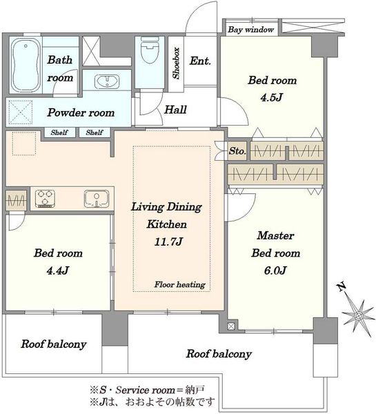 ルーフバルコニー:11.57m2 |