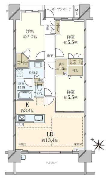 3LDK+納戸 |