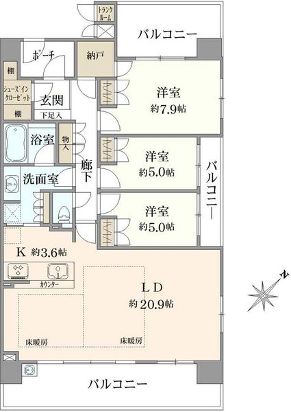 バルコニー面積 |