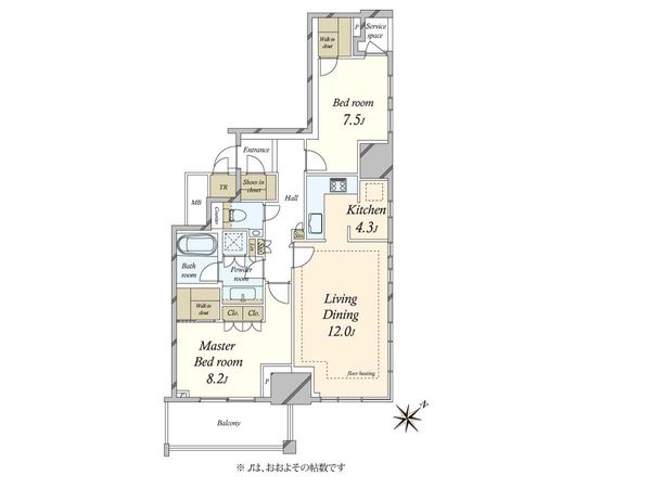 ・専有面積にトランクルーム0.86m2を含みます。 |