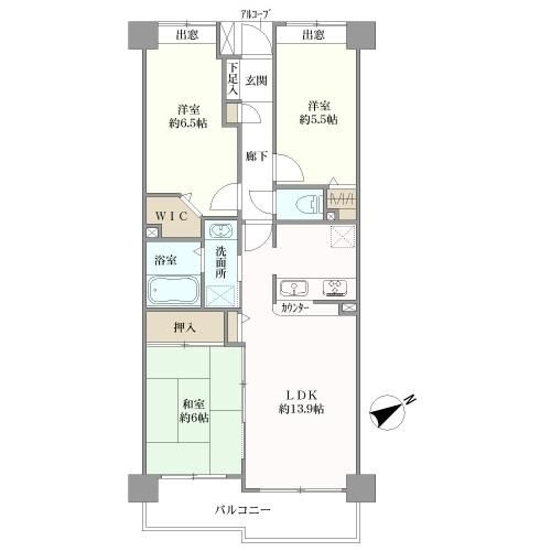 間取 3LDK+WIC 2014.04リフォーム済(フローリング貼替(LD・廊下)、床貼替(キッチン・洗面室)、クロス張替(LD・和室・洋室・キッチン・洗面室)、畳入替(和室)、水回り交換(独立洗面台・浴室ユニット)、レンジフード・コンロ交換等。) |