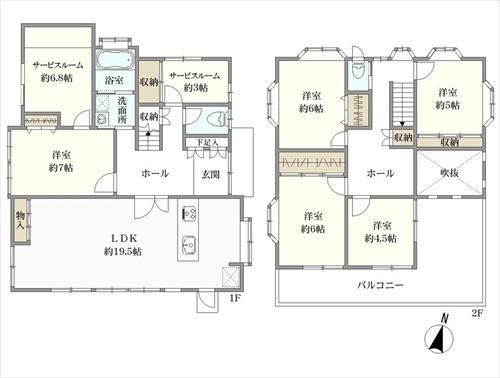 接道2:北、幅員4.0m 間取 5LDK+2S(S=サービスルーム) 2025.10リフォーム済(浴室交換、キッチン交換、洗面化粧台交換、トイレ交換(1F,2F)、全室クロス貼替、全室フローリング上貼、外壁塗装、バルコニー塗装、玄関ドア交換、ガス給湯器交換) |
