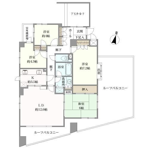 バルコニー面積はルーフバルコニーの面積です。また、プランタールーフ6.18平米を含みます。 |