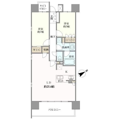 間取 2LDK+2WIC ペット飼育可能(細則あり)■WIC=ウォークインクローゼット■サービスバルコニー面積:1.91㎡ |