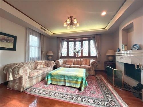 接道2:南東、幅員16.0m 間取 6LDK+納戸+書斎+WIC 建物構造:木・鉄筋コンクリート造セメント瓦葺、WIC=ウォークインクローゼット 景観法、宅地造成等工事規制区域(盛土規制法) |