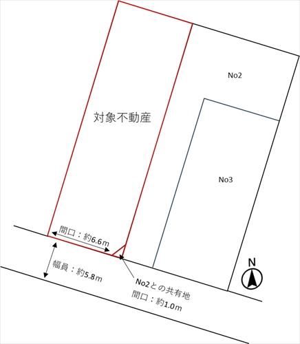 間口約7.6mには共有地(約1.0m)が含まれております。※水道・ガス・下水引込みなし。、国土法:否 |