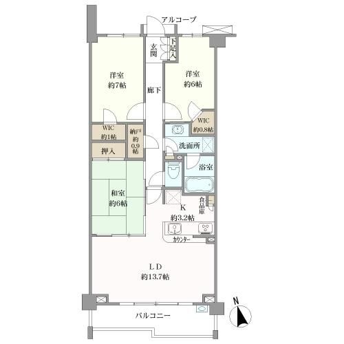 ※その他用途地域:第一種・第二種中高層住居専用地域。アルコーブ面積0.64㎡、室外機置場面積0.48㎡ |
