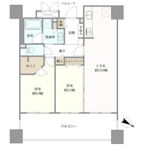 間取 2LDK+WIC 2019.12リフォーム済(全室クロス張替、全室フローリング張替、トイレ新調) WIC=ウォークインクローゼットです。なお、家具・調度品等は販売価格に含まれておりません。 |