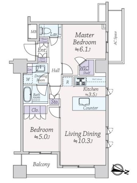 56.86㎡(約17.20坪):壁芯 |
