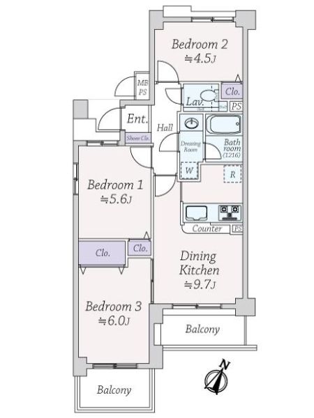 56.64㎡(約17.13坪):壁芯 |
