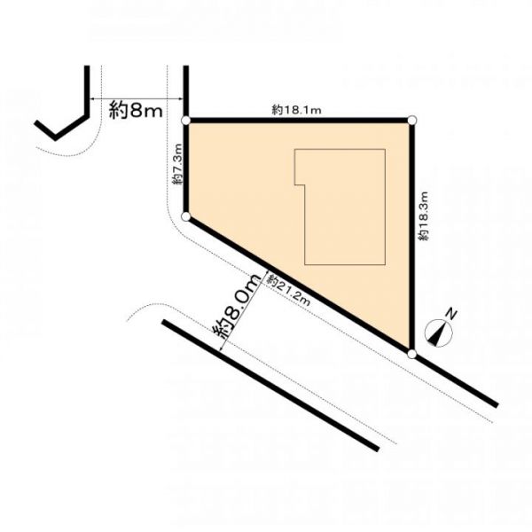 接道2:西、幅員8.0m 住友林業施工物件三角形角地駐車2台可能 |