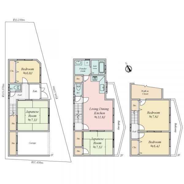 木造 地上3階建て |