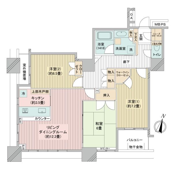 間取り 3LDK 専有面積 85.36㎡(約25.82坪):壁芯