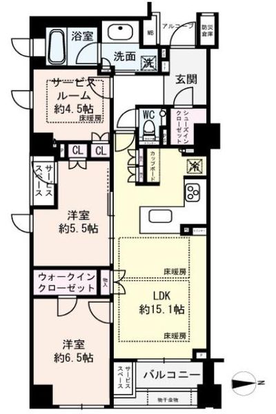 アルコープ面積:1.57? インターネット維持費:1848円 サービススペース面積:2.19? 自転車置場使用料:500円/台 |
