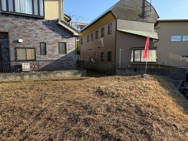 敷地面積90坪超、西側段落ちのため日当たり良好です。 |