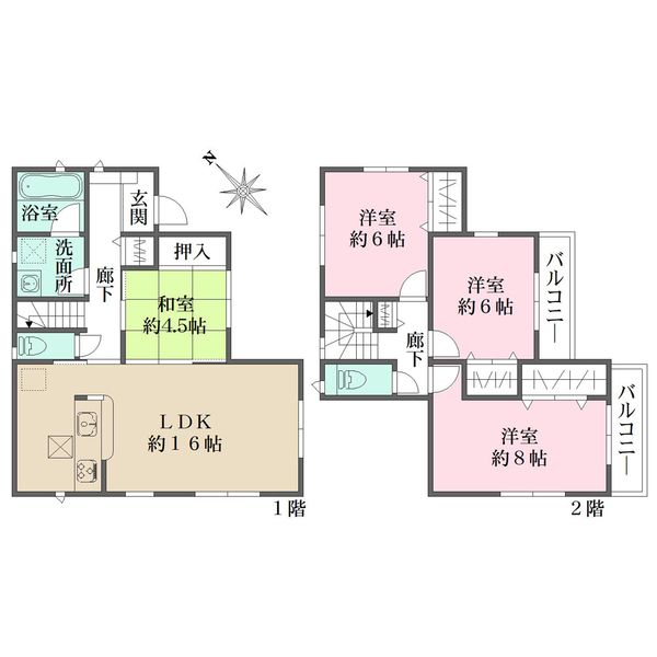 平成30年9月築、4LDK、陽当たり良好、各居室6帖以上 |