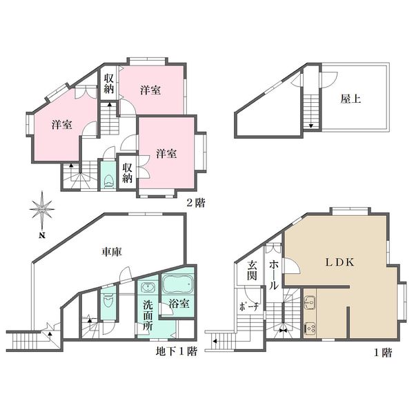 木造 地下1階付 地上3階建て |