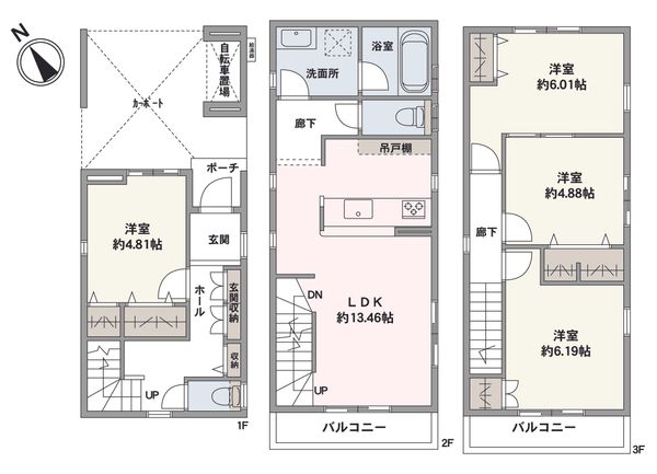 木造 地上3階建て |