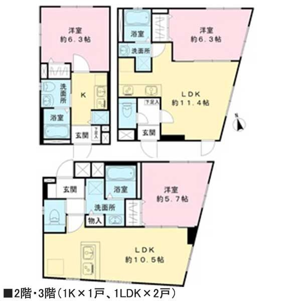 MDM高円寺 接道2:公道 ★現況サブリース中(3か月前通知により解除可。) ガス:都市、水道:公営、下水:公共 住戸数:11戸、事務所等住戸以外戸数:0戸、建物内各戸専有面積(最小):22.61㎡、建物内各戸専有面積(最大):46.28㎡ |