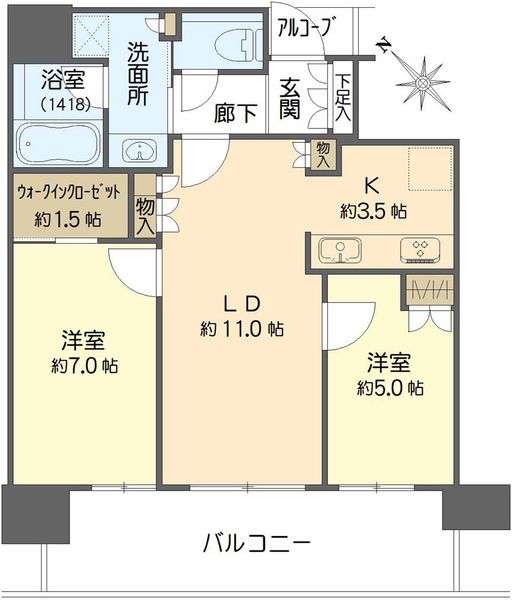・アルコーブ面積:1.64m2/設備:都市ガス |