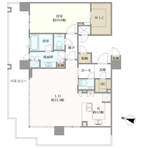 間取 1LDK+WIC+SIC オーナーチェンジ WIC=ウォークインクローゼット、SIC=シューズインクローゼット |