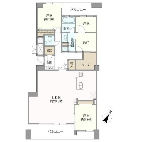 ※WIC=ウォークインクローゼット、SIC=シューズインクローゼット、S=サービスルーム(納戸) |