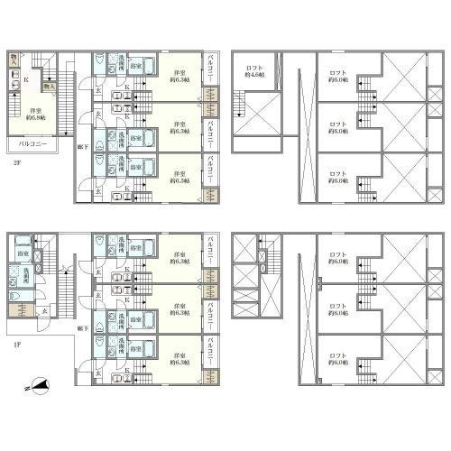 間取 1K+ロフト×7戸 オーナーチェンジ 建物名:ディアレスト愛宕 第二種20m高度地区 住戸数:7戸、事務所等住戸以外戸数:0戸、建物内各戸専有面積(最小):20.44㎡、建物内各戸専有面積(最大):28.21㎡ |