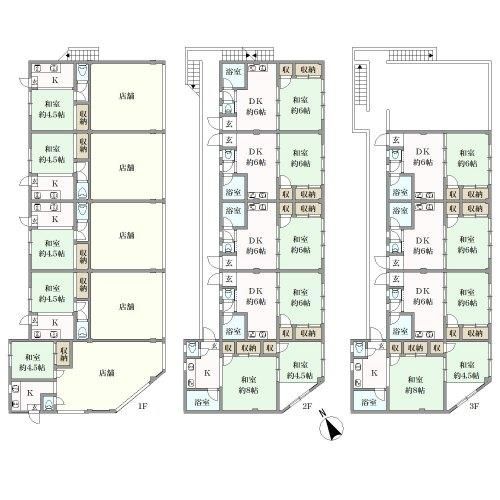 接道2:南西、幅員6.0m オーナーチェンジ 本物件は建蔽率、容積率を超過しており、同規模の再建築は出来ません。 建築基準法第22条区域・宅地造成工事規制区域・日影規制区域・市川市景観計画区域 住戸数:9戸、事務所等住戸以外戸数:5戸、建物内各戸専有面積(最小):29.25㎡、建物内各戸専有面積(最大):38.0㎡ |